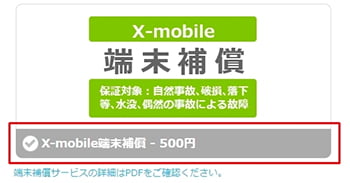 補償プランをご希望の場合のみ、『端末補償』をクリックしてください。